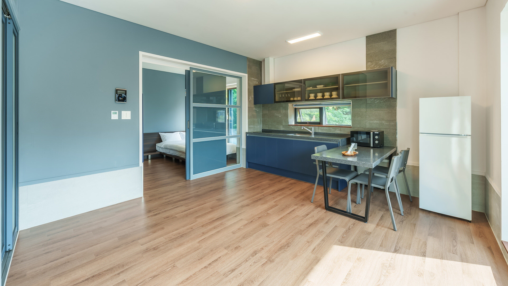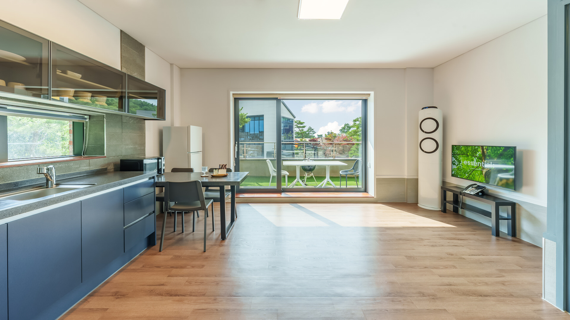 - 집기품목 : 욕실용품, 남녀공용, TV, 금연, 냉장고, 에어컨, 전기밥솥, 취사시설/도구, 개별바비큐, 식탁, 전자레인지, 가스레인지, 인덕션, 드라이기, 샴푸, 바디워시, 린스, 비누, 비데, 타월, 와이파이, OTT, 산전망