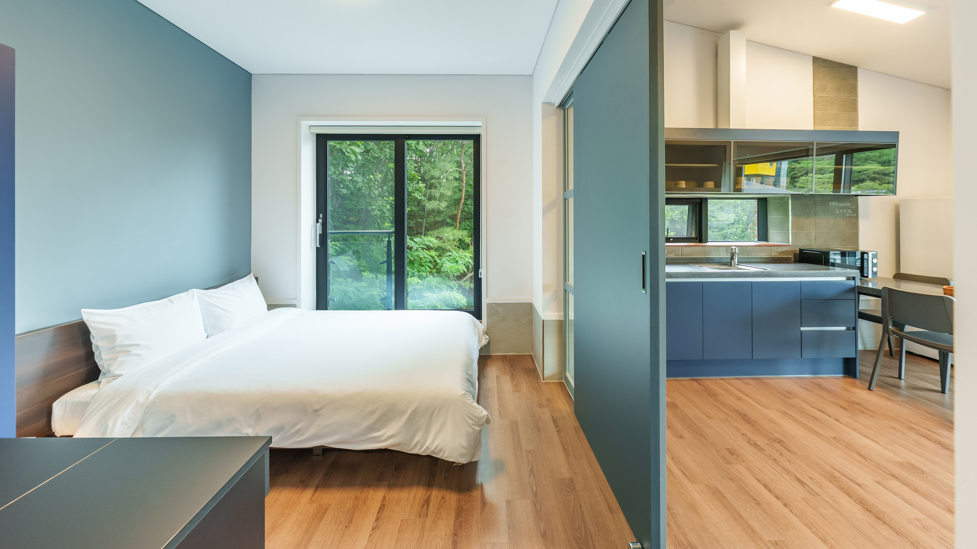 - 집기품목 : 욕실용품, 남녀공용, TV, 금연, 냉장고, 에어컨, 전기밥솥, 취사시설/도구, 식탁, 전자레인지, 가스레인지, 인덕션, 드라이기, 샴푸, 바디워시, 린스, 비누, 비데, 타월, 와이파이, OTT, 테라스, 산전망